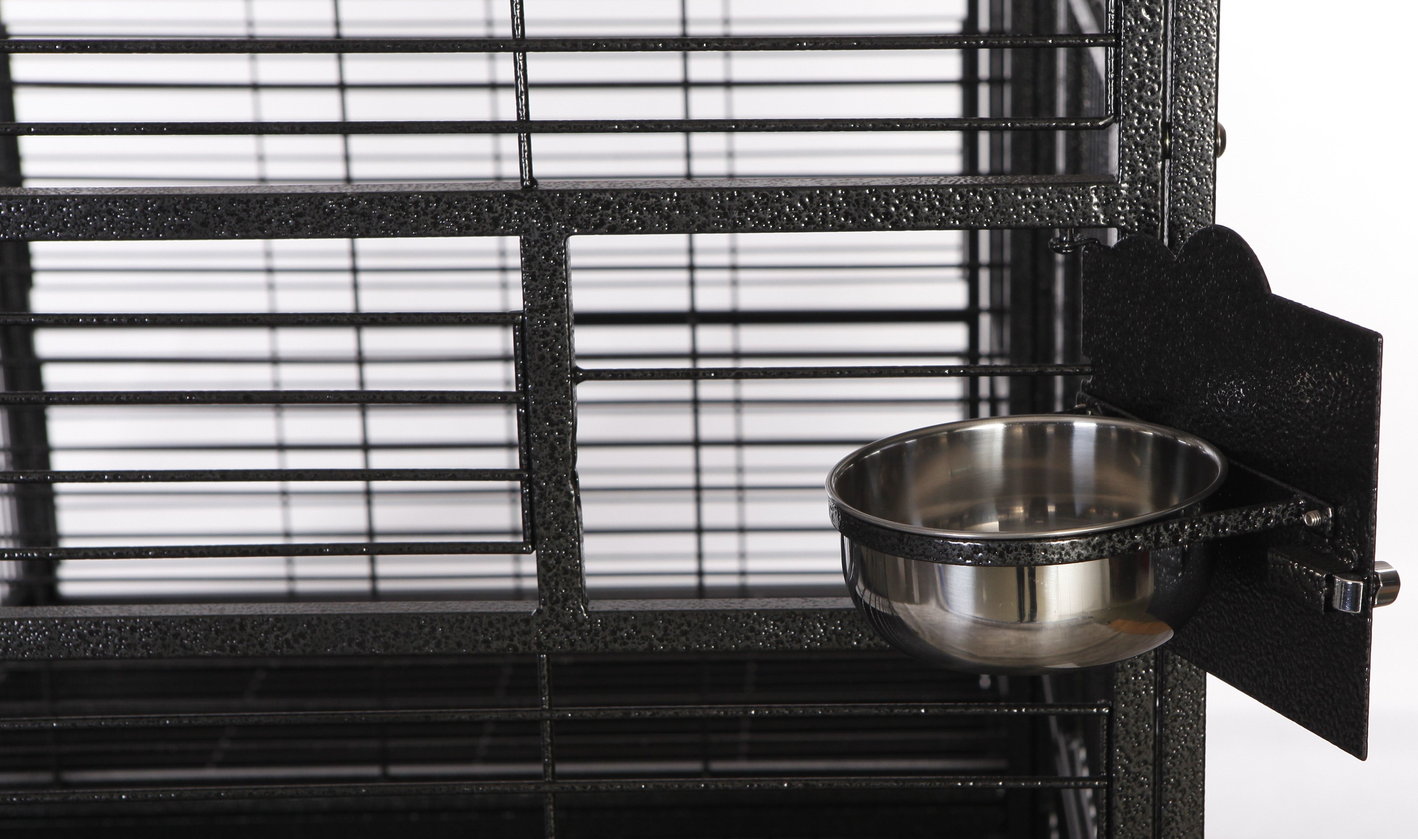 - 4 stainless steel feeder cups & 2 perches