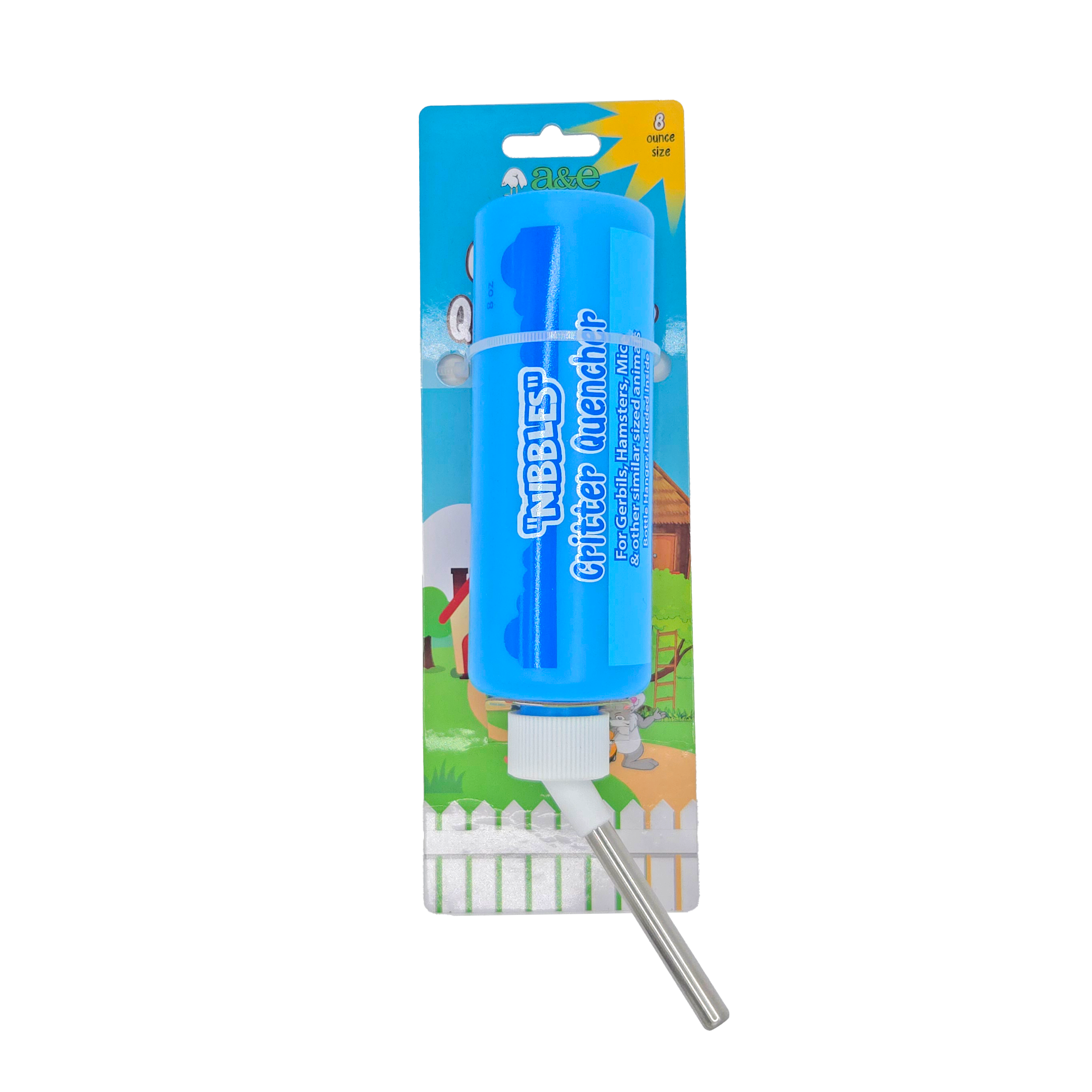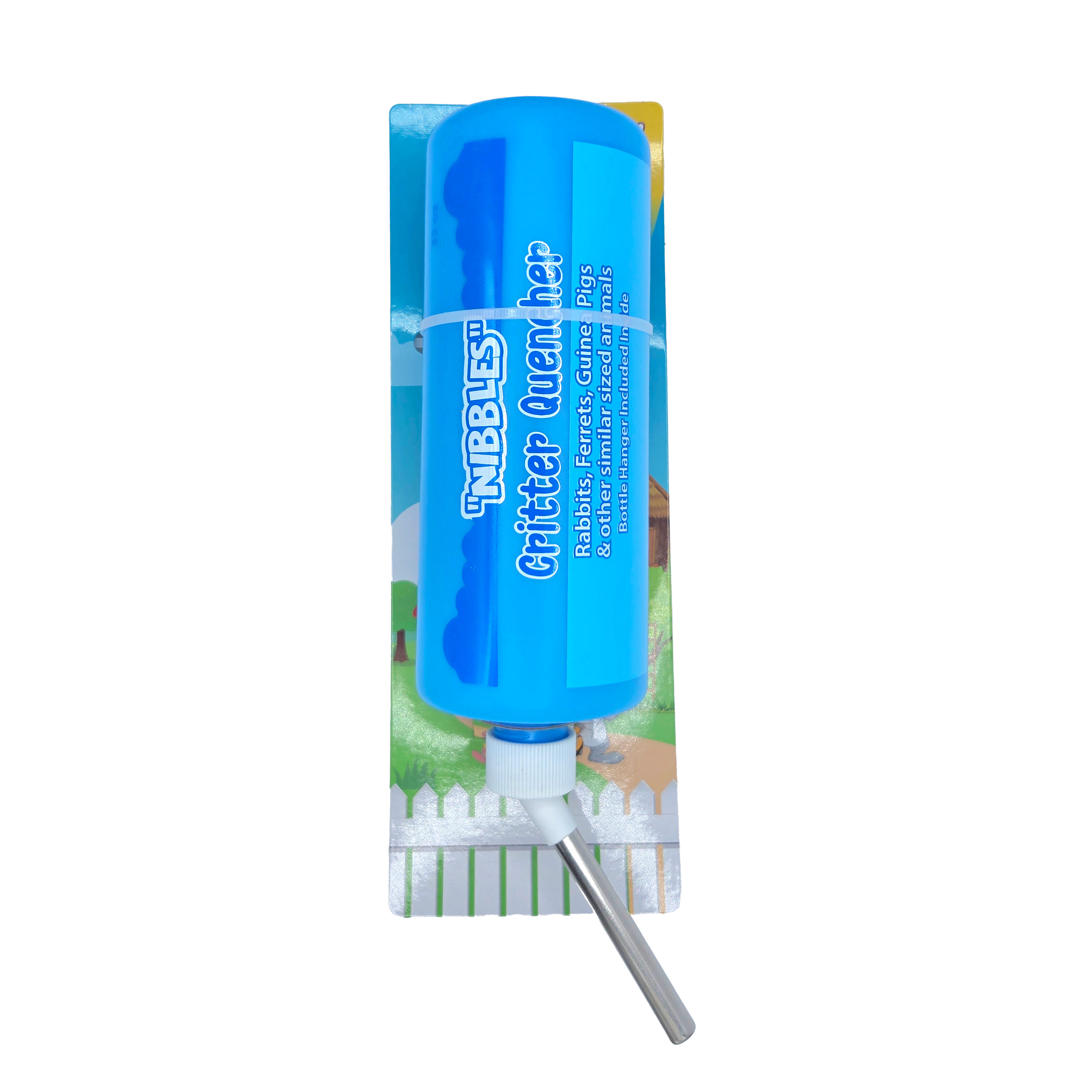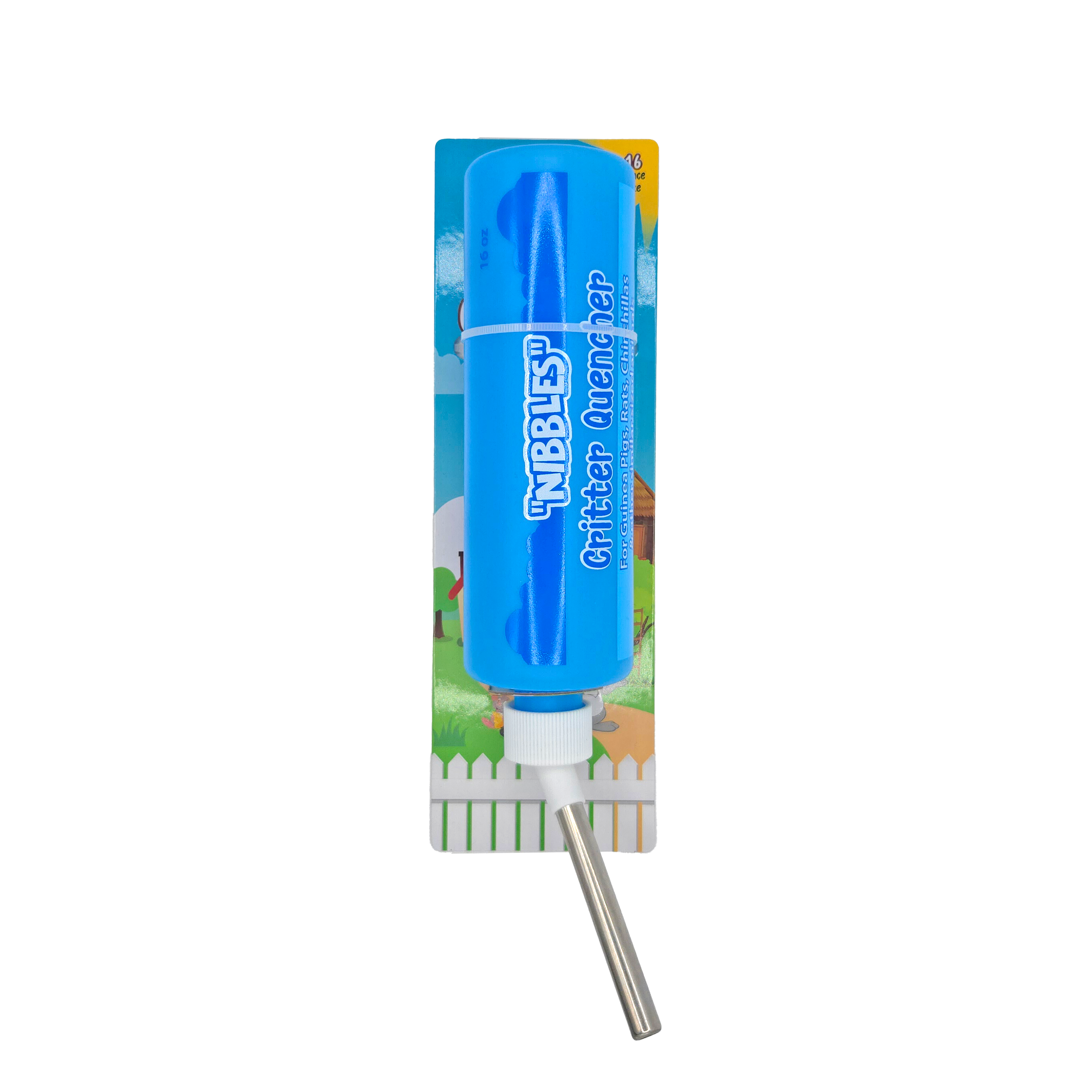 Nibbles Critter Quenchers hanging water bottles for small animals and pet rodents are available in three sizes to accommodate various cage setups. These bottles hang securely on the inside, providing easy access to fresh water. Crafted from durable, BPA-free materials, Nibbles Critter Quenchers ensure a safe and reliable hydration solution.