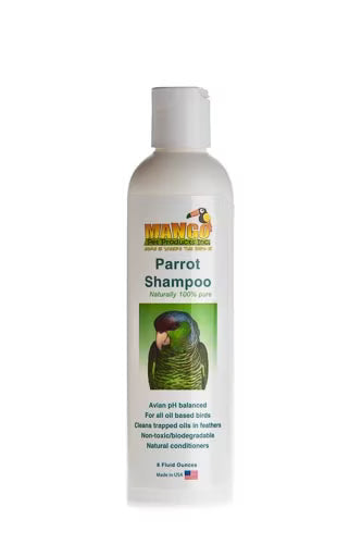 Product description by Mango Pet Products Inc. In our bird's world where we've introduced lipstick from kisses, newsprint ink, hand oils and a variety of other messes, our shampoos do the clean up job. Formulated for powder or oil based birds. Easy rinse shampoo is a pH balanced blend of mild natural soaps and vitamin conditioners. Easy flip top for grooming convenience. Great for shower lovers!