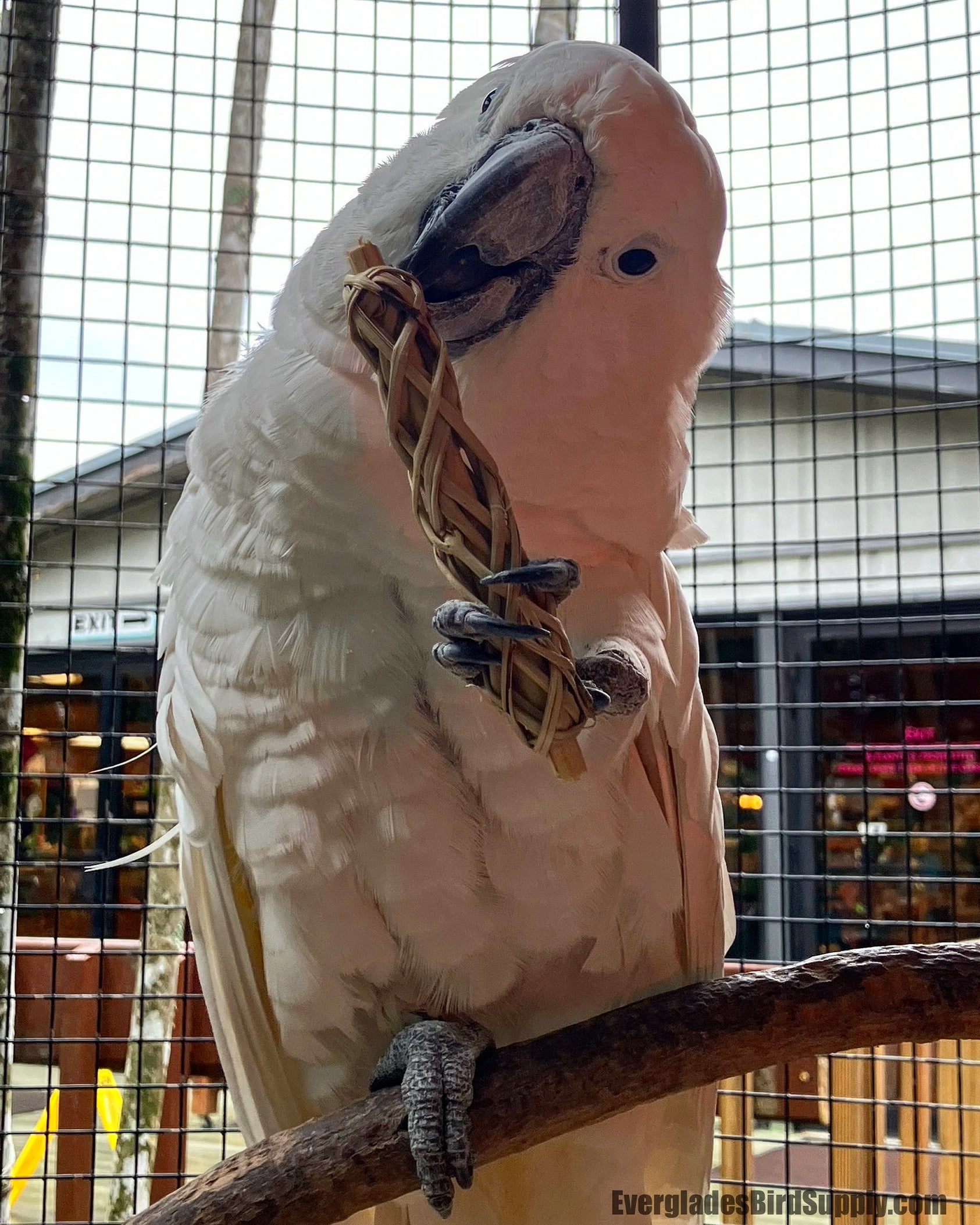 - Avoid giving large birds small toys or items that may present a choking hazard due to size differences