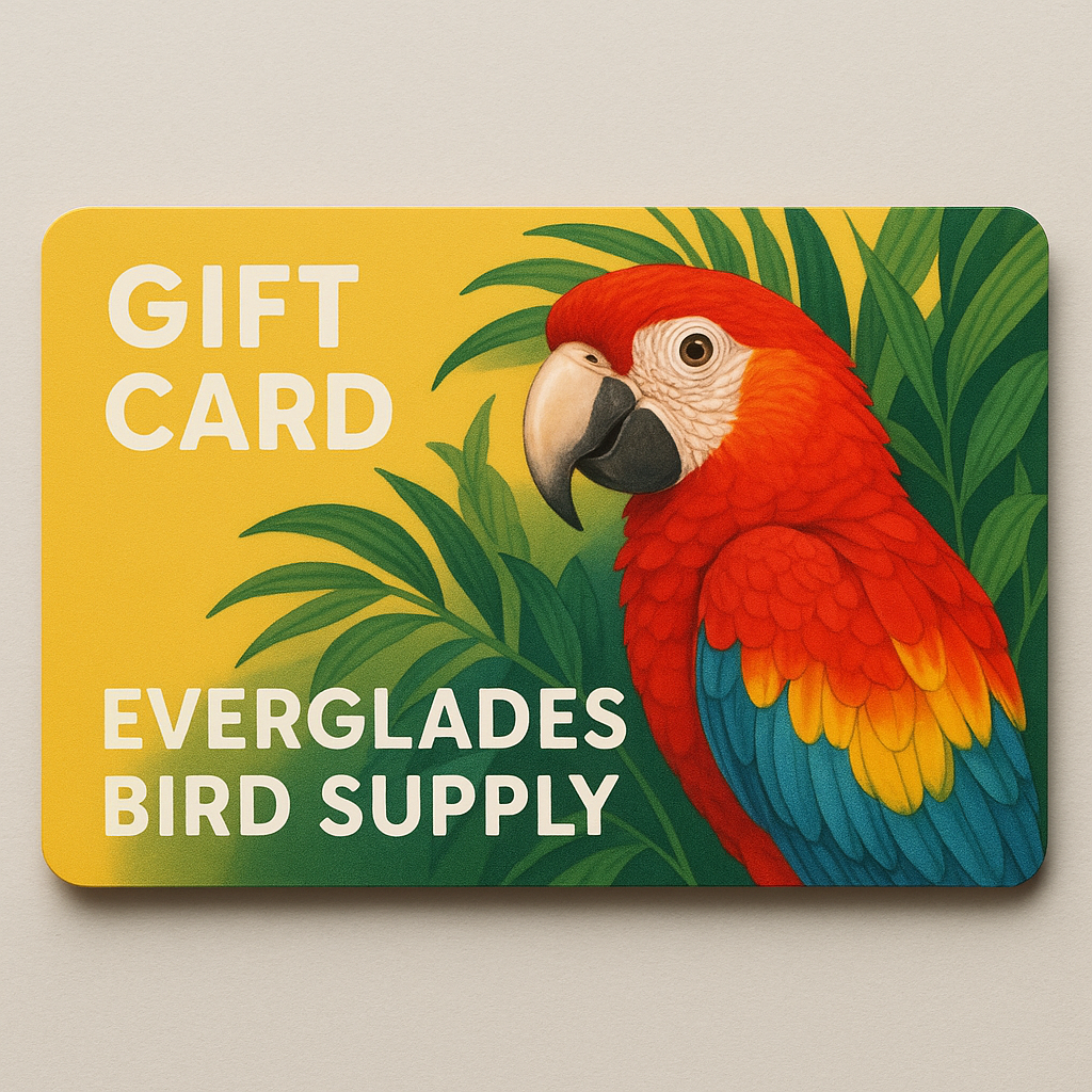 Give the gift of bird supplies with the Everglades Bird Supply Gift Card. Perfect for the bird lover in your life, this card allows them to choose from a wide selection of bird supplies. Let them spread their wings and explore the supplies they need and the supplies their birds love with this unique and thoughtful gift.
