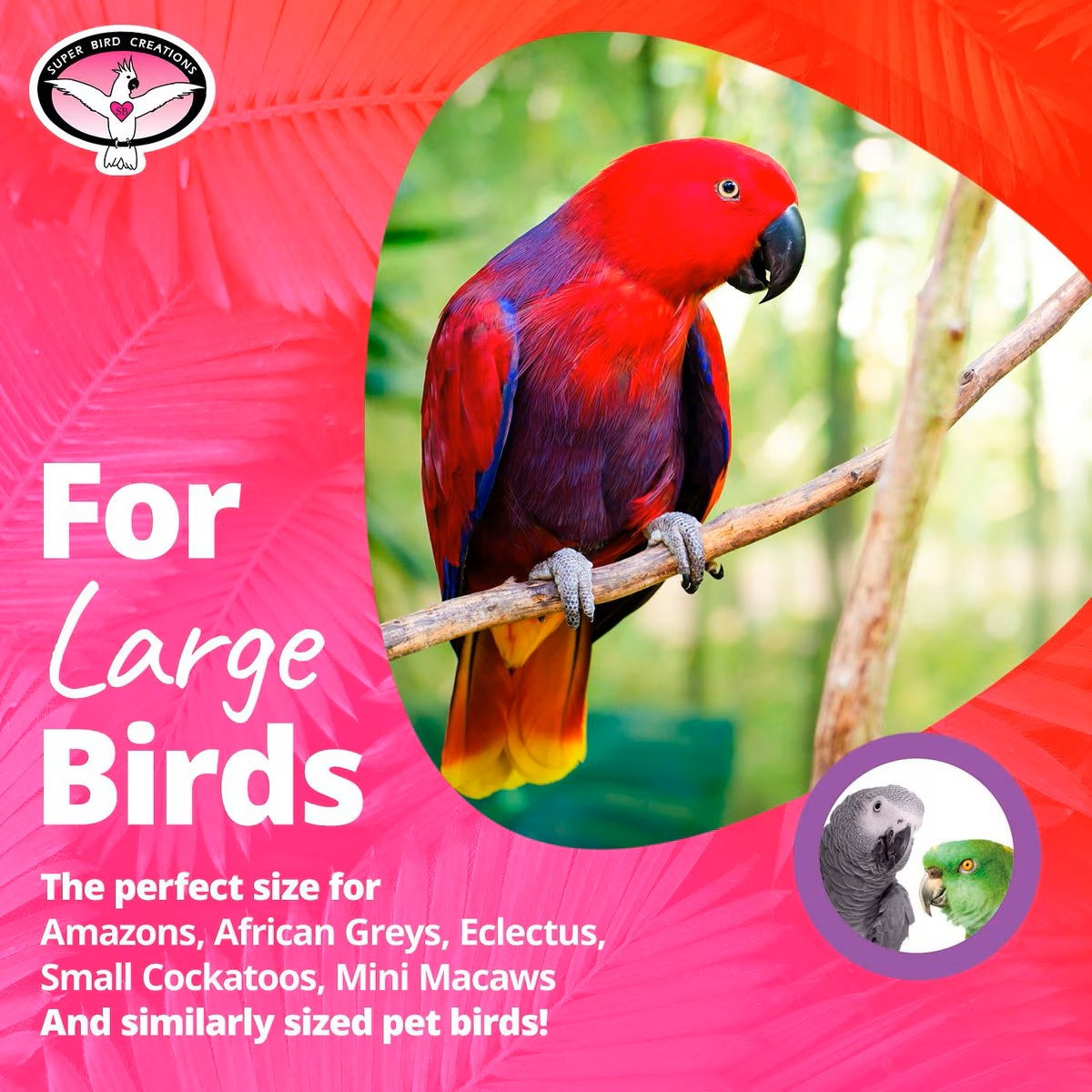 - Perfect size for African Greys, Amazons, Eclectus, Small Cockatoos and Mini Macaws
