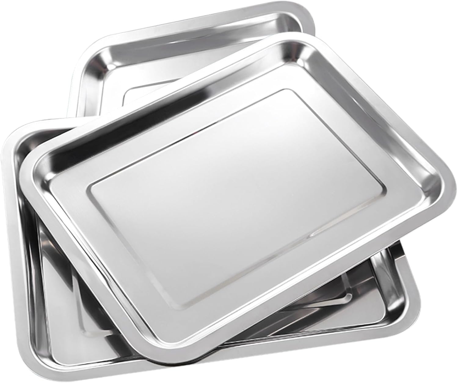 This durable stainless steel tray measures 12.6" X 10.6" X 0.8" and features a curved edge for easy cleanup. Perfect for bird and parrot stands, play stands, carrying bags, or travel cages. Keep your feathered friend's space clean and hygienic with this versatile easy to clean replacement tray.