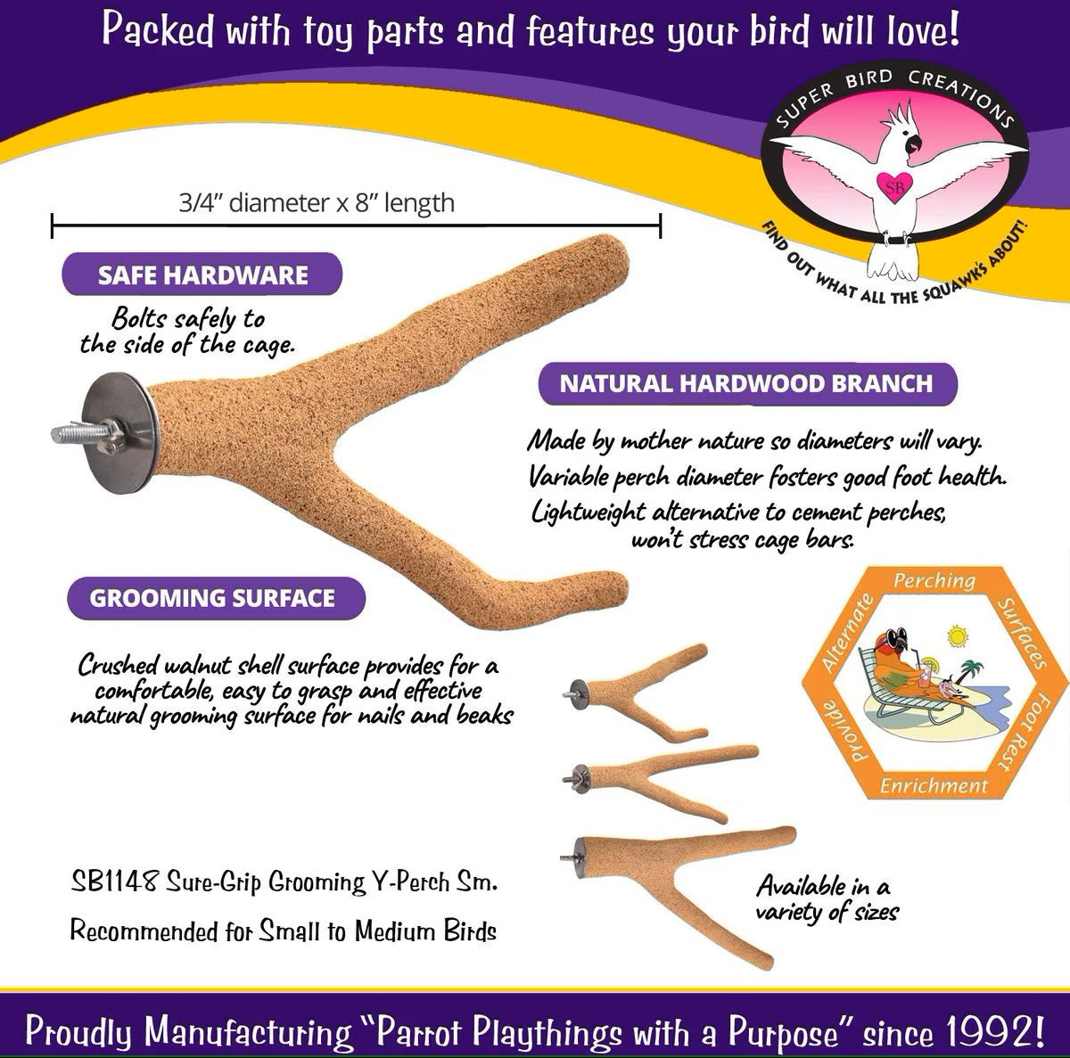 Sure-Grip Grooming Y Bird Perch Small by Super Bird Creations